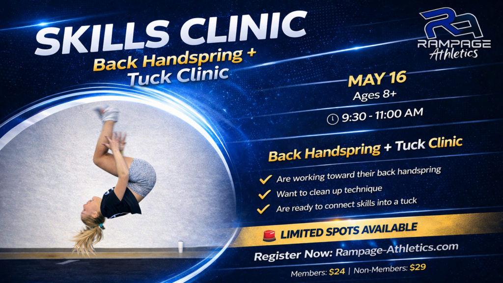 Join us at Rampage Athletics for a week of focused skill training designed to build confidence and clean up technique. Perfect for athletes working fundamentals or pushing to the next level.